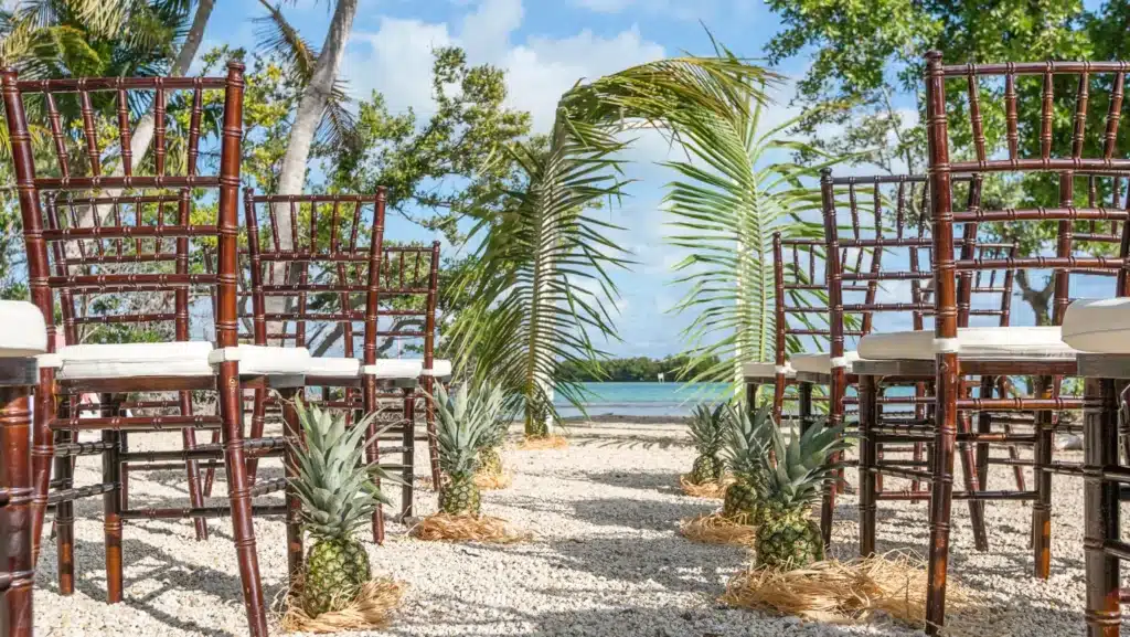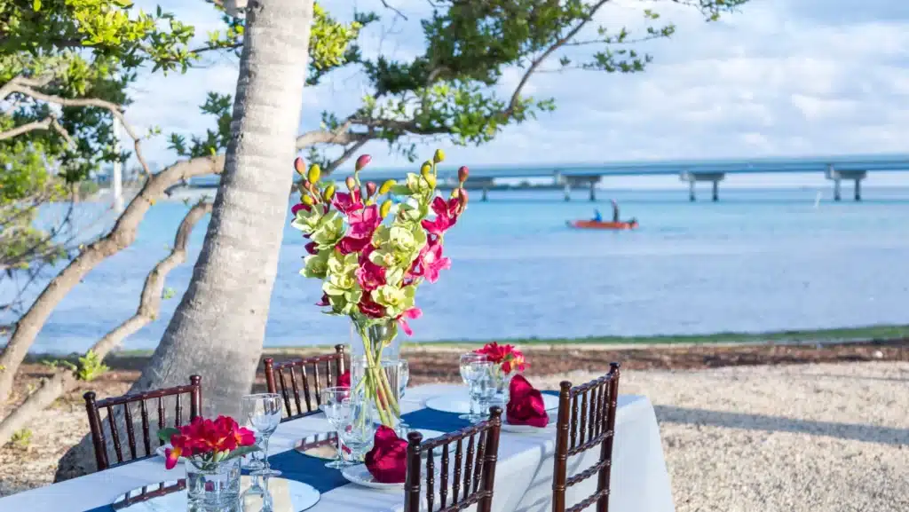 Say “I do!” on our private beach in the Florida Keys with a turquoise water backdrop offering stunning views of both the Atlantic Ocean and the Gulf of Mexico. Our “Islamorada Beach”, is a private beach tucked away at the west end of Robbie’s Marina of Islamorada on Lower Matecumbe Key.
